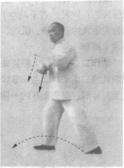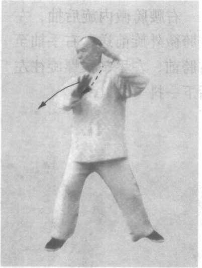 图101图101图102图102图103图103右腰胯微内旋后抽,左 腰胯微外旋前送;右手抽至 右胯前,左手掌根螺旋往左 后下一■抖(图103 )o