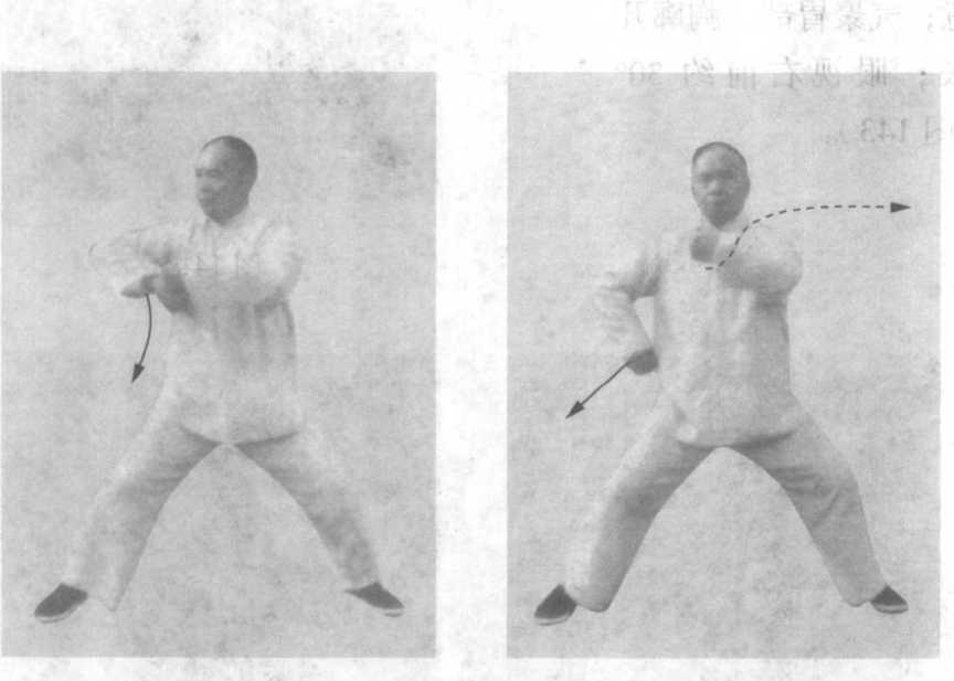 1 .欲左先右,蓄而后发,缠绕转折要柔顺,不犯刚硬、凹 凸、断续之病,发劲一刹那之间,要周身劲集中到主攻方向。