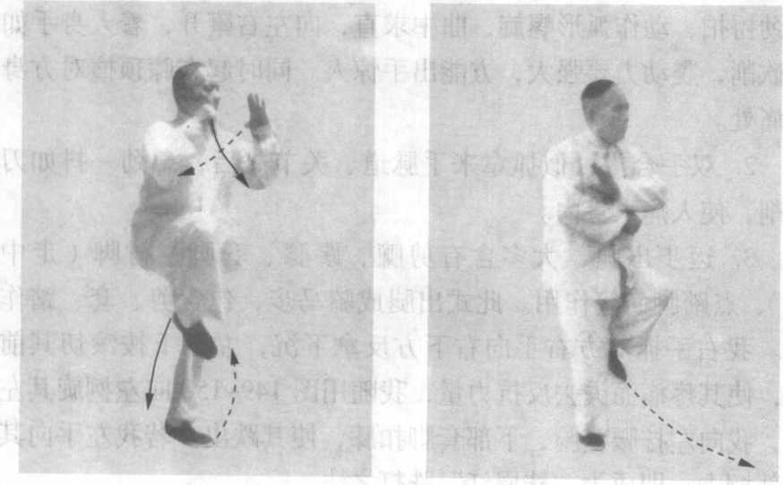 4 .右膝右手上提时,可以纵身跃起,带动左右足跃起,双