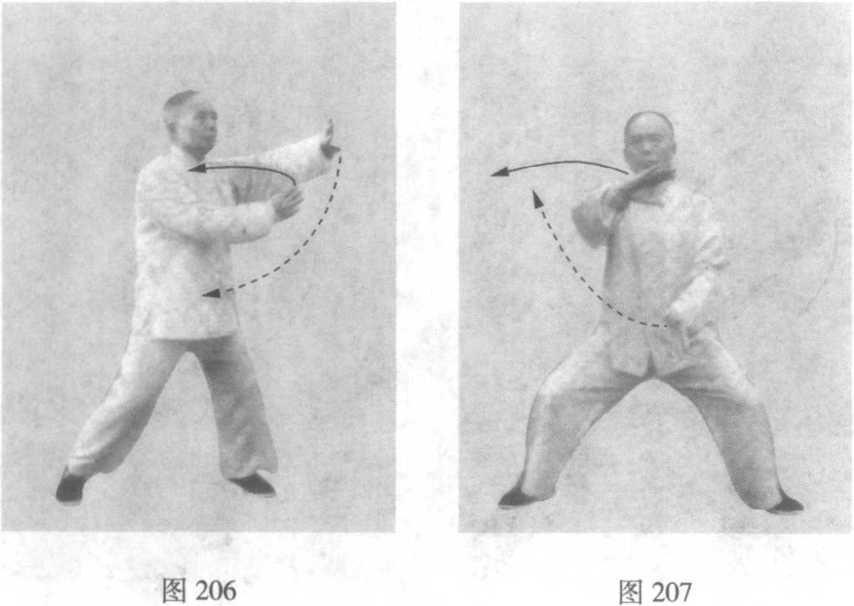 动作一:动作过程与 要求参见第二十七式左转 肱掌的最后定势(图206)。