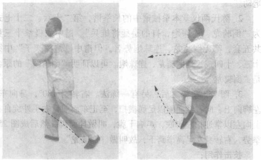 2 .陈氏两仪堂本拳械谱中的长拳谱,第二十六、二十七式 为“倒骑龙、连珠炮,打的是猛将雄兵”。谱中太极拳十三势 共五套,都无倒骑龙、连珠炮势名。但谱中“炮捶架子”中第 十三、十四式,是倒骑龙、连珠炮。可以证明“倒骑麟”的原名 是“倒骑龙”。