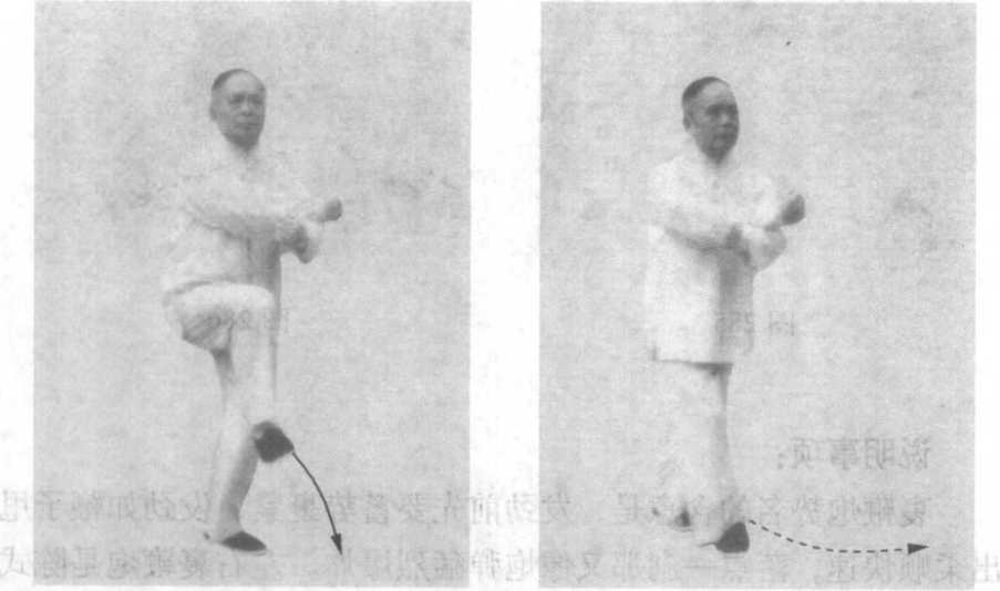 2 .动作三、四,右足向左盖步,左足向左跳出,能远尽管 远,此系窜蹦跳跃动作,须如猫窜之轻灵迅速,虎扑之威武勇 猛,方显刚柔相济,虚实互换之妙用。