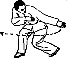 要点:成双弓步时要收腹含胸,左肩内扣。左臂前挑时 臂要直,贴胯而过,向左抡转时,要转足合膝,转腰带臂, 两臂要立圆划弧。继续抡转时要拧腰切胯,以腰发力,右肱 部要贴耳根,手尽力远伸。下劈时要收腹含胸,两臂上下交 错用力,抱紧。整个动作要上下协调一致。