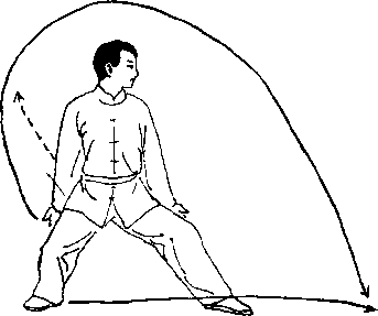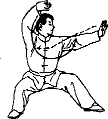 ① 图202左脚向前落 步,重心稍下降,目 视前下方。(图202)
