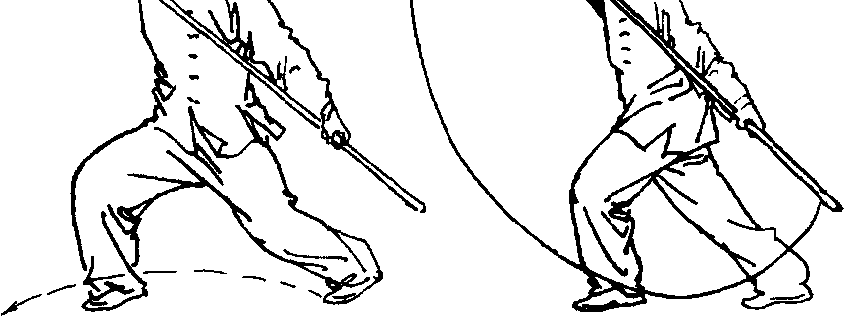 转身时脚下要灵活,动作要快。提拉棍时,棍梢挡在后腿外