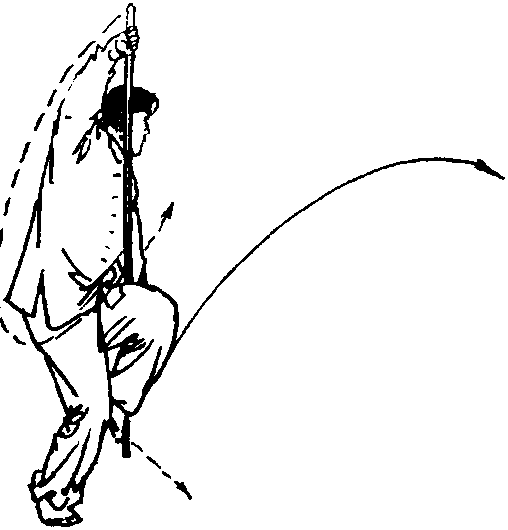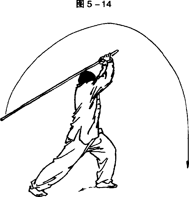 同时左手滑把向前、向上撩棍。目视棍梢(图5-14)。