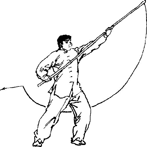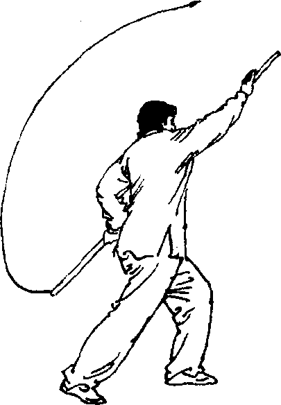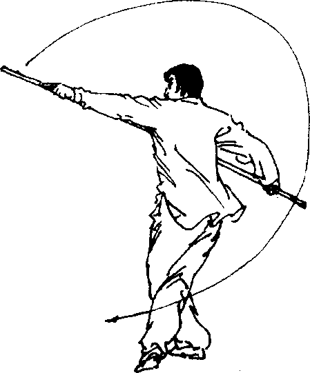 拨开对方器械后, 绕步至对方身后,刺其 后背。