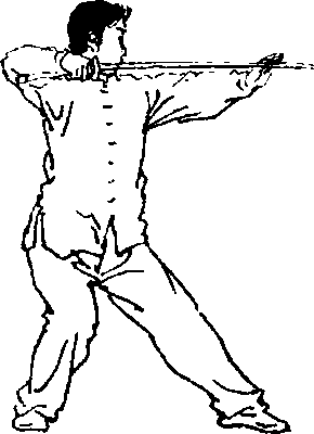 此势系放长击远,直刺面部Q
