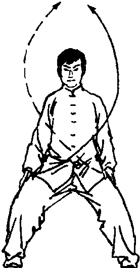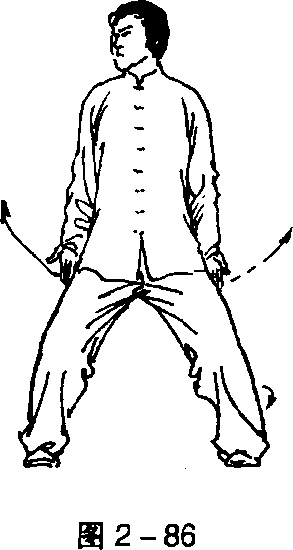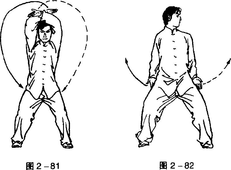 马步站立,两臂自然垂于体侧。目视前方(图2-80)。