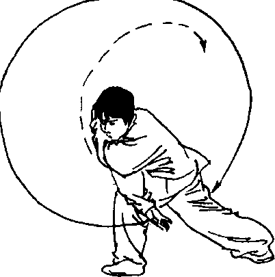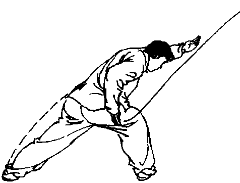圆划弧,拧腰切胯,合膝转足。下劈时收腹含胸,两臂交叉用力抱 紧。整个动作要上下一致。