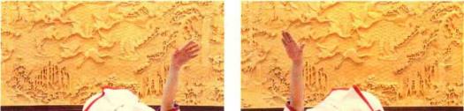 第2组动作:站姿与第1组动作相同, 双手抱肘弯腰之后,上身左右摇摆。