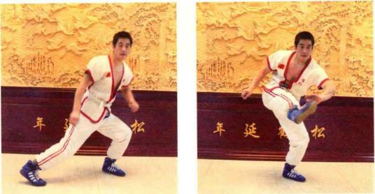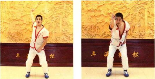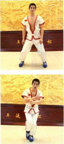 马步下蹲,左手掌心向下向前伸出,右脚脚尖踢左手掌心,连续十次,再换左脚 踢右手掌心。老切子空马步下蹲,身体呈跤架姿势,左手模拟抓对方小袖,从外往里(从左向右)一撇, 左脚上步,后脚划一个“9”字(模拟让过对方右腿),蹬向身后,同时身体前倾,右 手作捡物状。然后换另一侧重复练习。这个动作也叫砸切子。如果右手模拟夹对方颈 部,则叫裹切子。马步站立,右手沿顺时针方向由内向外划圆之后推向前方,同时腰部用力,双脚向后拉擦。之后换左手重复同样动作。