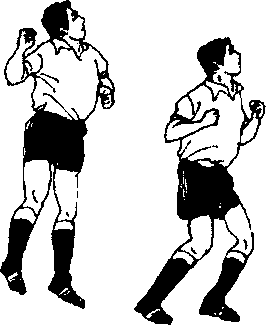 双腿支撑穗,单 臌起跣顶球,身 体在空中向后呈 反弓状。