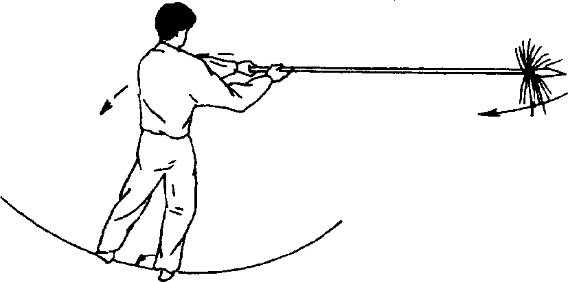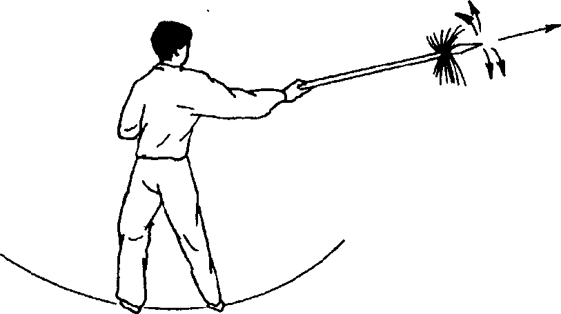 动作不停,上右步,同时左手往回拉枪. 目视枪尖(图474)。动作不停,上右步,同时双手持枪,向 左向右再向左右拨枪,目视枪尖(图475)。图4754. 扎枪撤枪动作不停,两腿不动,枪向前扎出,目视 前方(图476)。动作不停,右步微扣,同时左手往回撤枪,目 视前方(图477)。图477图477六段图477图477