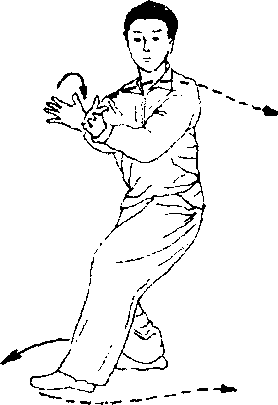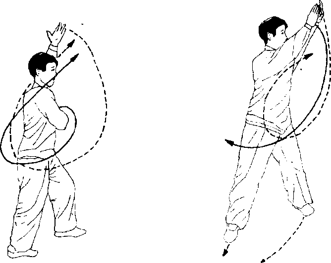 换式:当行至圈的西南角时,扣右步,摆左步,同时两
