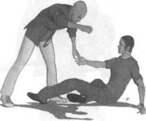 技术要领躲闪要及时牵拉对手手臂时腿脚一定要同时出击破坏对手的重心平衡才能轻易摔倒对手。对手倒地后于地面上的旋转滚动要自然流畅。