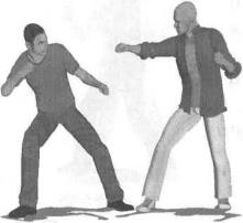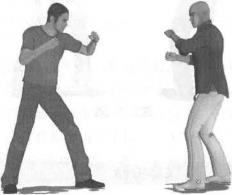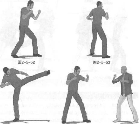 实战应用实战中敌我双方对峙(图2-5-61)对手突然右脚上步以右摆拳袭击我头部我迅速右转体闪身躲避(图2-5-62)紧接着在对