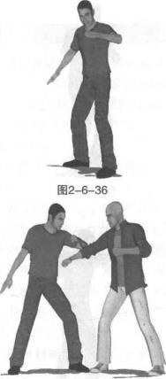 动作说明首先按左前式基本格斗站姿站立(图2-6-35)出手时身