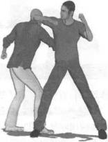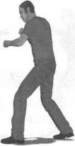 图2-7-26图2-7-26图2-7-27图2-7-27动作说明首先按左前式基本格斗站姿站立(图2-7-25)随即左臂屈肘向下劈砸高与腹齐右臂屈肘夹紧(图2-7-26)紧接着身体向右旋转180度右脚随势向右后方撤一大步同时右臂屈肘夹紧随身体转动向右后方横扫高与肩齐拳心向下力达肘尖目视右肘尖出肘瞬间配合呼气(图2-7-27)
