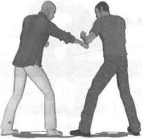 2-7-282-7-28实战应用实战中敌我双方对峙(图2-7-28)对手突然用右拳击打我腹部我迅速用左臂向下磕截对手右手腕部(图2-7-29)紧接着我身体猛然右后转右腿向右后方插步转身同时右臂屈肘夹紧快速抡起以迅雷不及掩耳之势划弧形路线向右后上方横扫而出以肘尖为力点击打对方头面部、太阳穴等要害(图2-7-30)