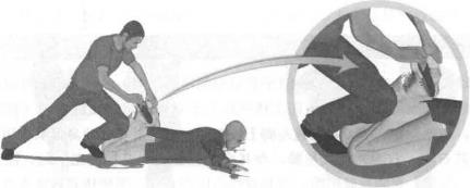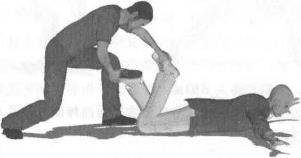 24) 。继而左腿屈膝下跪将其双腿挤压在一起可致使其两膝关节相互挫伤(图3-6-25)。