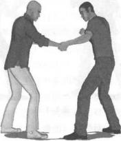 动作说明实战中敌我双方对峙(图4-1-1)对手突然用右拳击打我腹部我迅速用左手格挡并抓住其右手腕部(图4-1-2)紧接着上体