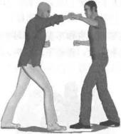 动作说明实战中敌我双方对峙(图4-1-6)对手突然右脚向前上