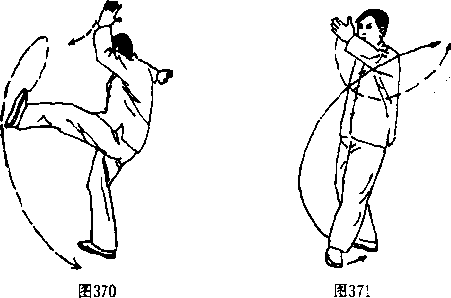 要点要发挥转体的力量,把腿摆起,摆腿时左脚随之 转动,使上了顺达。