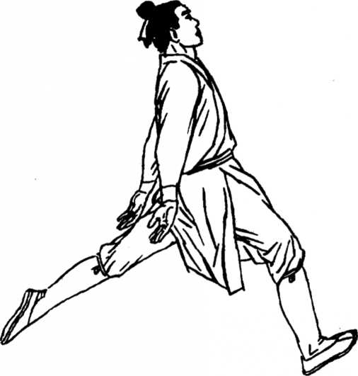 侧支耗腿单举脚,脚尖勾起向侧方。