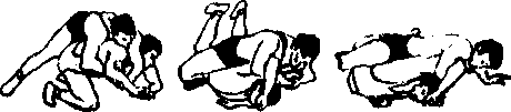 开始姿势:一方跪撑,一方从侧边把持住。进攻者用左腿从 对手腹下插入伸向裆中用左脚勾住对手小腿.右手压头.左臂从 对手右腋下向前伸去握颈后部,用左手压头右臂撬肩压颈同时