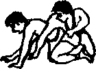开始姿势:一方跪撑, ?方在侧边把持住o进攻者右臂把腰. 左手双腿后拉对手右脚腕,向起拉,用双腿缠住对手右大腿,放 开左手,用撬腿腹部压对手屁股出背弓之力使对手躯干向左后 侧翻转,接着右手从对手右边拉下颌,向左后拉,使对手双肩朝 下翻转输分,(图157)。