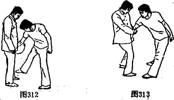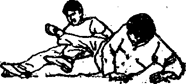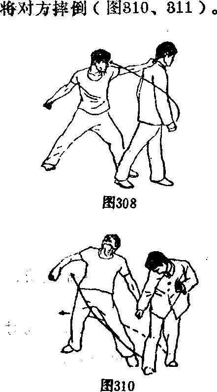 (3)上动不停上右脚于对方两脚前右臂环抱其后腰