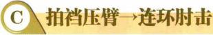 (2)我迅速抬起左手屈肘伸至对方右手臂上方同时右手变掌直臂内旋,蓄势待发(图1-3-8)。