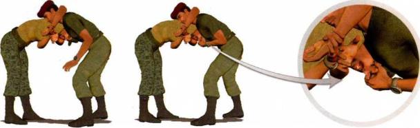 2-3-172-3-17(3)在对方因裆部剧痛而被迫向后退缩臀部、上体前俯时,我可以迅速将右臂高高抬起伸展至对方脖颈上方然后屈肘圈揽住对方脖颈上