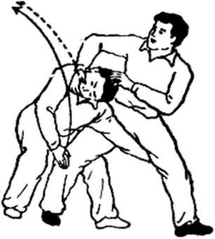 图61图61接上势当甲用穿裆靠摔乙时乙身重心迅速下沉急以右手扳甲下颈以左手压甲头顶双手同时用力扳拧使甲身失去控制能力(图61)