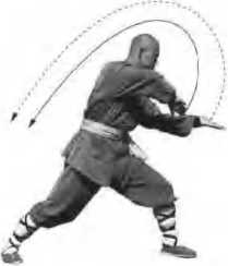 action, ttie left hand threads forward from outside of the right arm at the same time, draw back the right fist on the waist, the body slants forward, keep the action of the lower limb unchangeable Eyes look forward. (Figure 23)