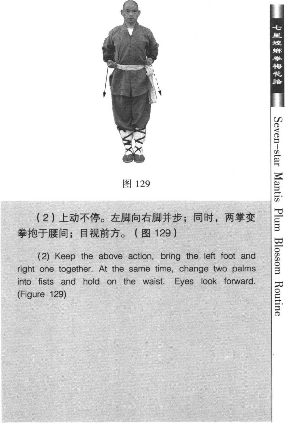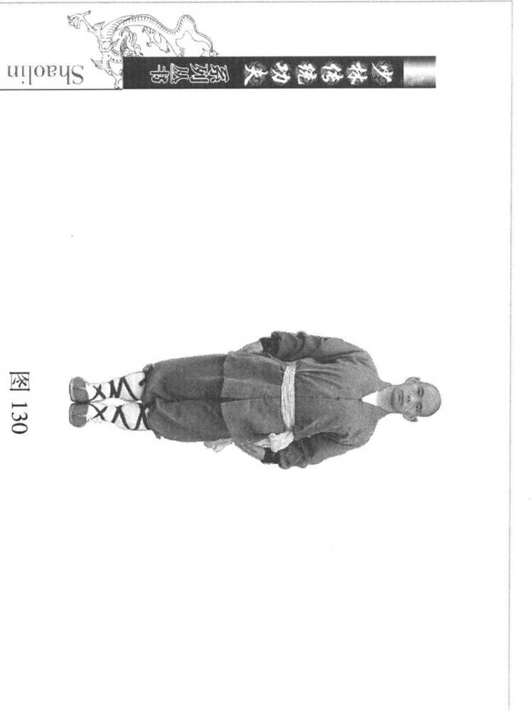 (3) Keep theOJbove action, change the fists into pa 一 ms and drop oncroth side of the body naturally. Eyesook forward. (Figure 130)
