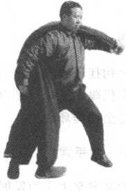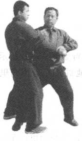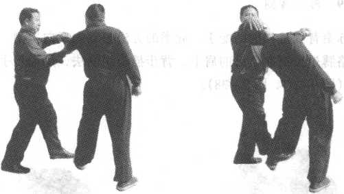 少林拳掌手雷的发展是形意的劈拳,八卦的单换掌、孤雁出 群,太极的按掌。都是一手接手托肘,一手用掌外发打摔一体 (图9-41、图9-42)0也可用外刀勾发手而见跤。