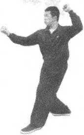 应用法:以上手法讲是打顶心捶,也可上打咽喉,下打阴, 左右两肋并中心,实为形意拳崩拳变手而已。压挑手有空就入, 见孔插针。