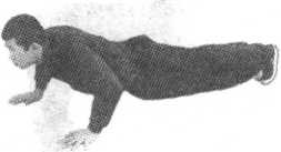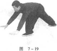 左脚在前,双手做虎爪状前探(图7- 19)0然后双手扶地, 将左脚撤向后方,如做俯卧撑状,以双手、双脚尖做支点(图