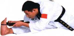 ★前俯时受力一方的膝部要蹬直。 此法能强化双腿及腰背筋肌。