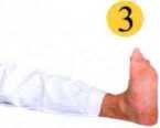 ★上身向右侧俯时,右膝部尽量不 要弯曲。向左侧俯亦然。此法能锻 炼脊椎及增强腰部柔软度。右侧动作相同。(3)