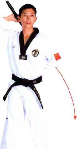 ★尽量避免露空太多,动作过 大,回力较迟,为敌所乘。此法 主要用于扫击敌人头部、颈脖、 肩部、下阴及腰肋等部位。