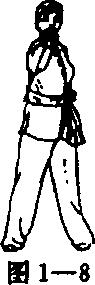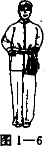 五指并拢;目视前方(图1-1),两脚并步站立;两手握拳,屈 肘,肘尖向后,抱于腰间,拳心向上;头正,颈顶,目视前方 (图 1 -2)。