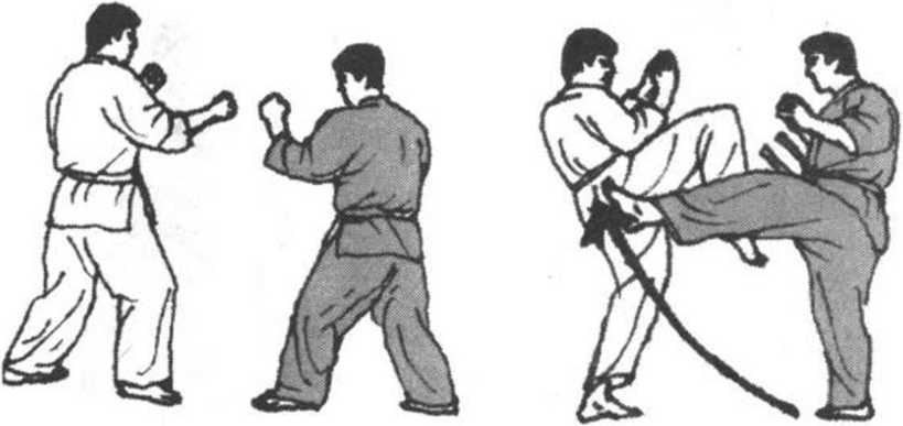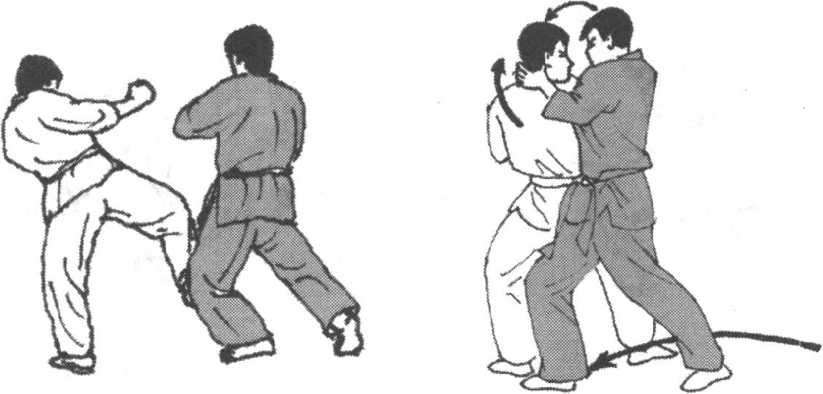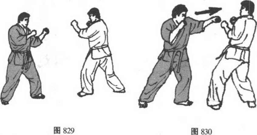图833图833图834图834图833图833图834图834(图 835、836、837、838、839、840、841)亦是一组以踢击 先导顺势切入对方后方实施膝撞,然后致倒转入地面攻击的综合 式组合攻击。注意在此组动作中,对方为“左撇子”选手,即右 手右足置前者。图837图837图838图838图837图837图838图838图841