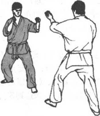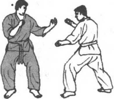 综合来看,实战空手道的防御反击打法可划分为三大类。即 (1)以攻为守法;(2)接触式防御反击法;(3)非接触式防御反 击法。这三大类防御反击法在实战中既可独立运用,亦可综合运 用,而以综合运用为主。