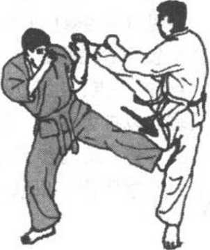 高护,上体后倾等等)前提下,只管大胆迎进阻截,必百发百 中。对方动作幅度越大,动作越慢,则越易成功。当然,此种拦 截反击对方踢击支撑腿的反击法,适用于对方起高腿攻击时。