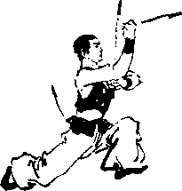 图 身体起立,重心移至右脚,图 左脚向左前方跃跨一步,右脚随 之跟进,成右跪步;同时,两手 经腰间,右拳以拳轮为力点,经 右侧方孤线向前上方贯打,拳心 向上,高与头平。左手经左恻孤 线向前摆,托扶于右肘下。眼向 前看,如图7所示a独立前点_螳螂拳套路基本动作 身体起立,左脚稍前移,重心移至左脚,上体微左转,右脚屈膝提起,以右脚尖为力点,伸膝向前上方点踢,高与 头平1同时,左手手心向下,向上向前划弧下压。右拳以拳 面为力点,在左臂内经胸前、向前方伸出,拳心向内,高与鼻 平,眼看右脚尖。如图8_1、8—2所示。第二段
