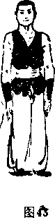 方劈出变勾手,高与肩平,勾尖向下。左拳变掌扶于右脊内 侧,眼看前方。如图3 —1所示。