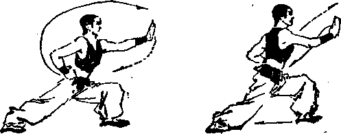 前劈,高与肩平,眼看右拳前方。如图20 — 2所示#